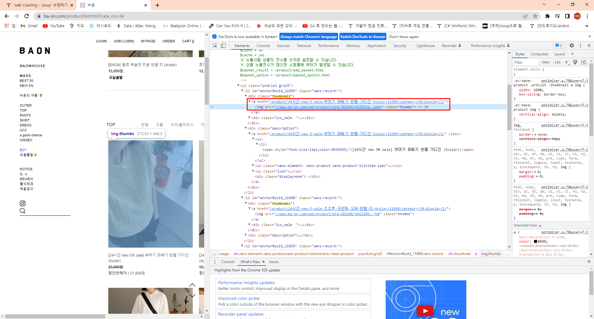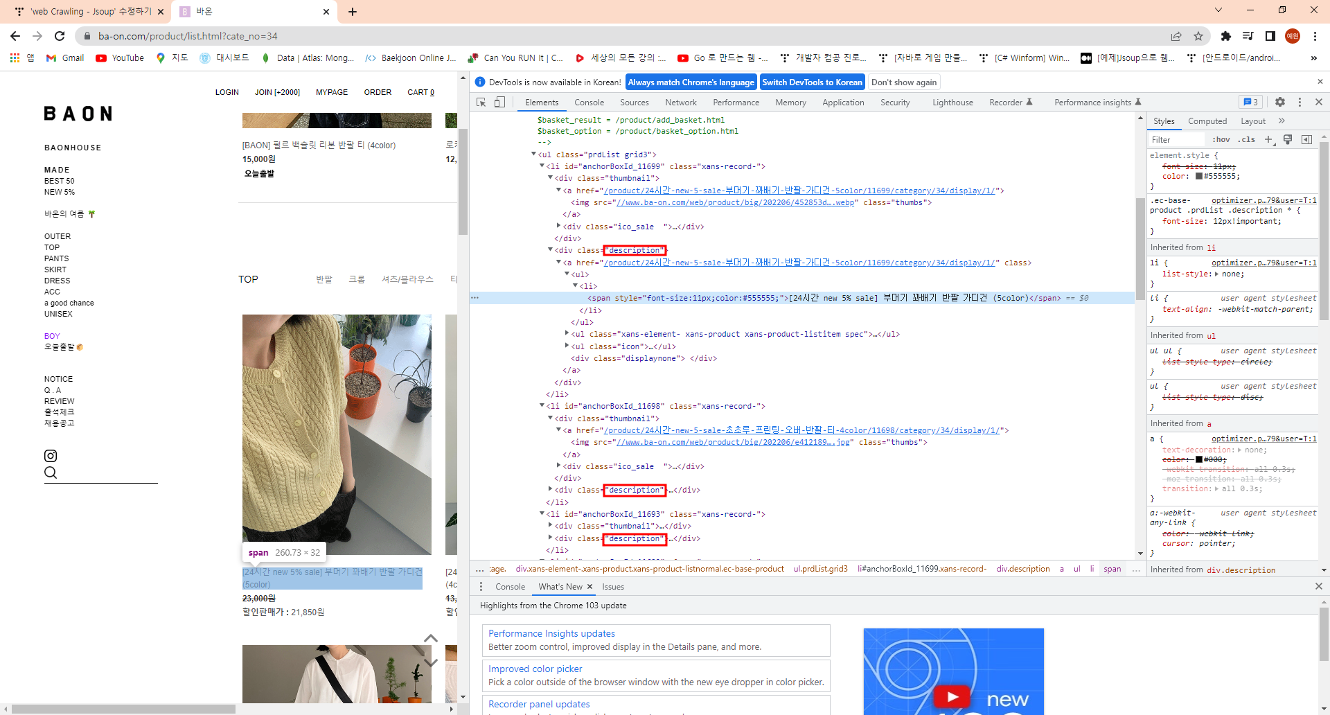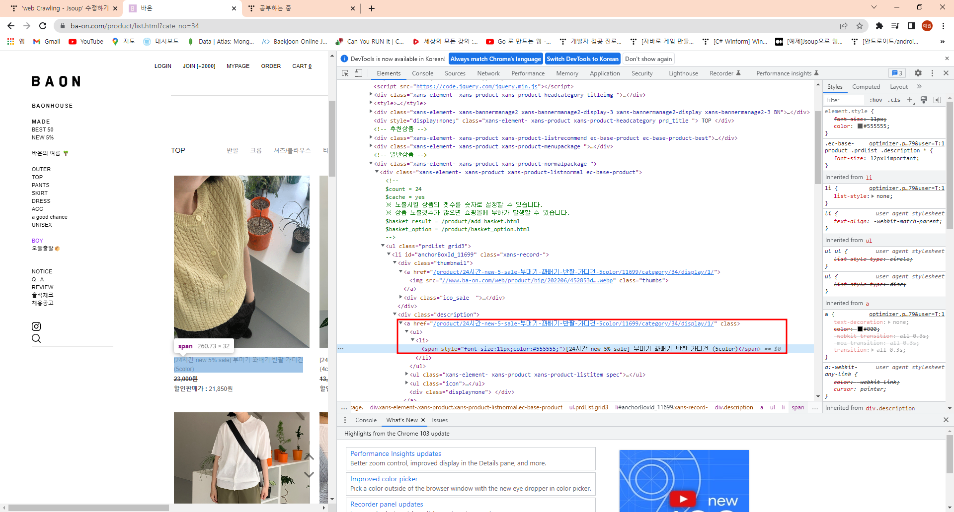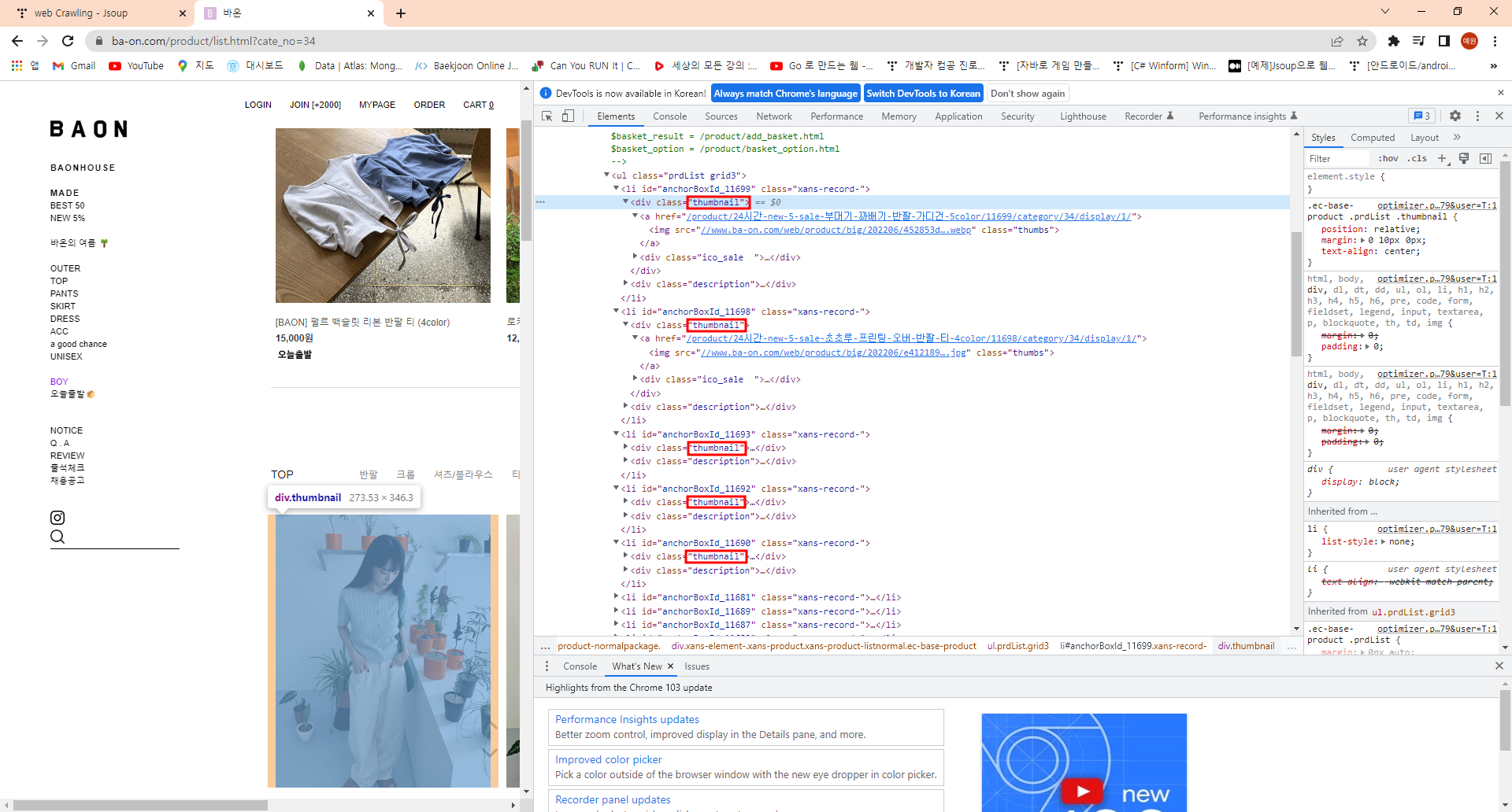 파싱한 페이지: https://ba-on.com/product/list.html?cate_no=34
