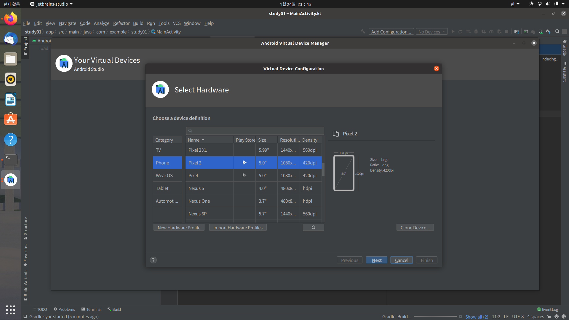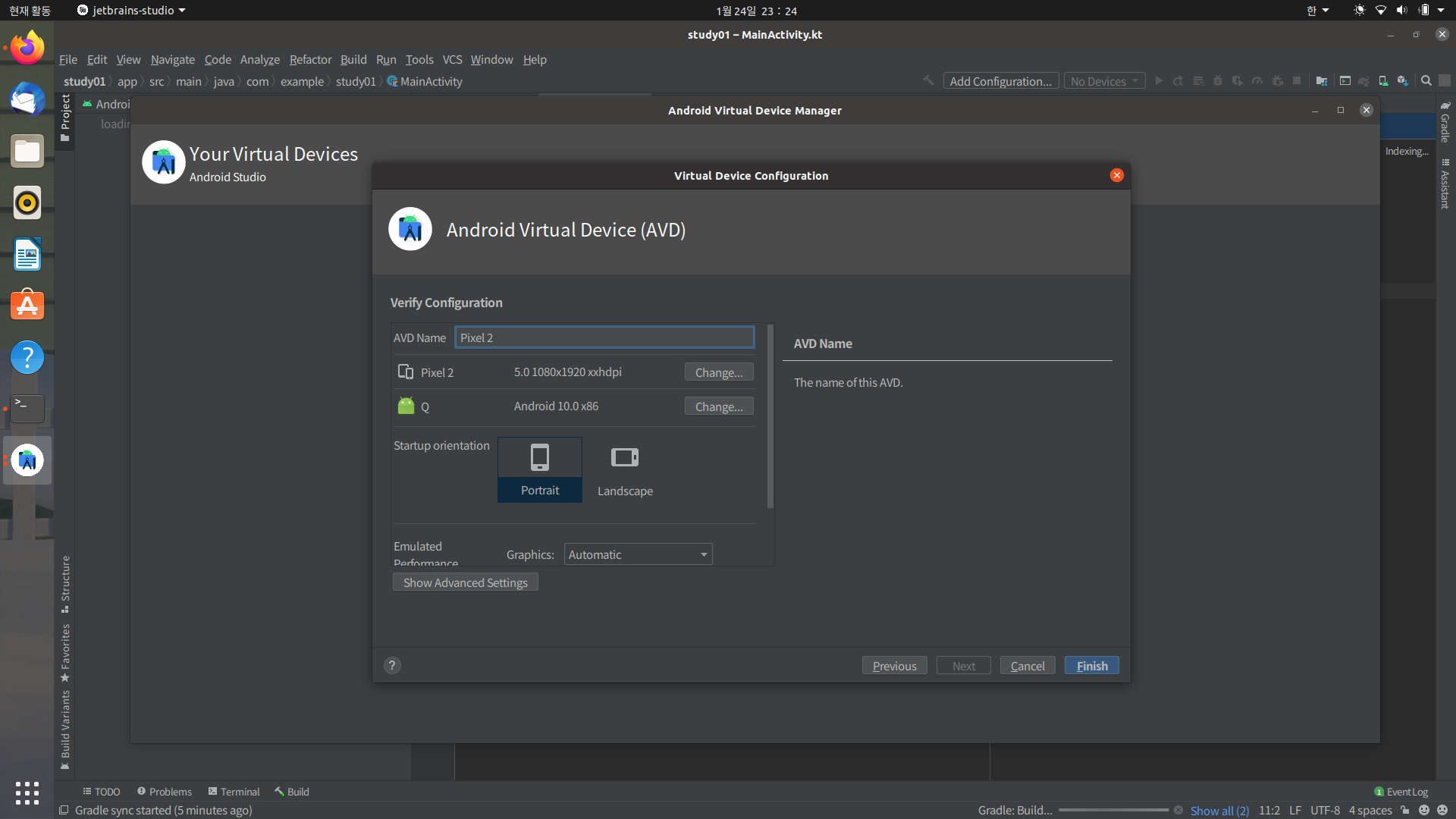 그다음에 avd 만들건데 여기는 첫 설정때문에 책 다시 참고함